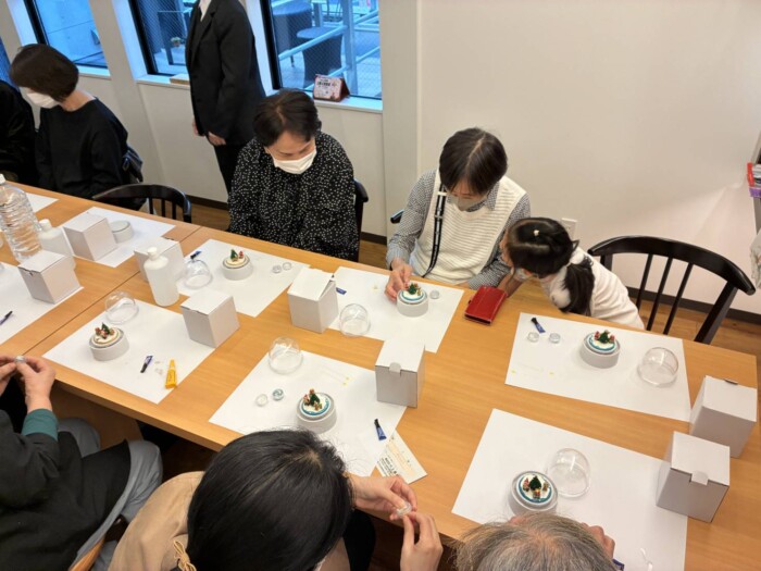 いつもとは少し趣向を変えて開催したのですが、ワークショップも初めてのスノードーム作りに挑戦しました。