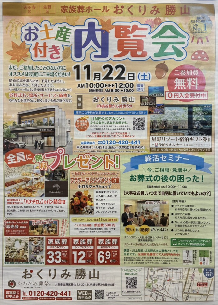 11/22(土)、おくりみ勝山にてお土産付き内覧会を開催いたします。