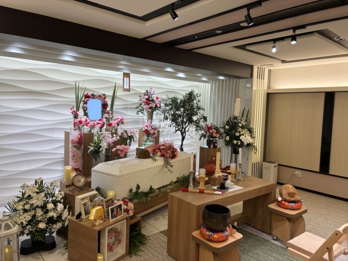 式場においては、1日1組の葬儀式場で、気を遣うことのないゆっくりとした大切な人とのお別れをご提供しております。