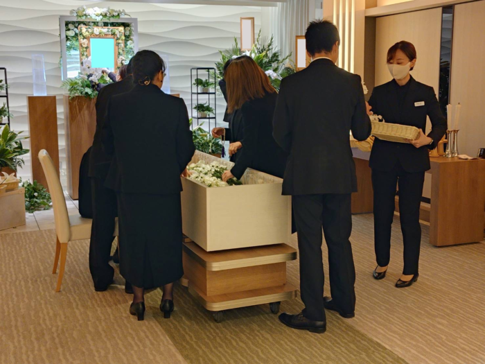 お式の中で、特に印象的な変化が見られたのは「ラストメイク(死化粧)」の場面です。当初のお打ち合わせでは、「立ち会わなくても良いのではないか」と少し消極的なご様子だったご家族でしたが、実際にお立会いいただくと、プロの手によって凛々しく、美しく整えられたお父様の表情に皆様大変喜ばれ、表情がパッと明るくなられたのが印象的でした。そこからは、「本当に優しい父で、子供の頃はいろんな場所へ連れて行ってもらった」といった懐かしい思い出話が次々と溢れ出し、お父様への感謝を分かち合う貴重な時間となりました。