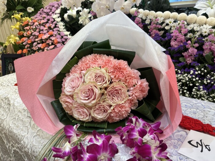 故人様は生前、和裁をこよなく愛し、着物を染めるところからご自身で手がけられるほどの手練れでいらっしゃったと伺いました 。お子様たちが、お母様が作ってくれた振袖の話を誇らしげに語られるお姿に、深い愛情と絆を感じ、その想いに寄り添った空間づくりを大切にいたしました 。特にお花が大好きで園芸を趣味にされていたという故人様のために、祭壇はご希望通り、色とりどりの花々でいっぱいに彩り、華やかな旅立ちを演出いたしました 。