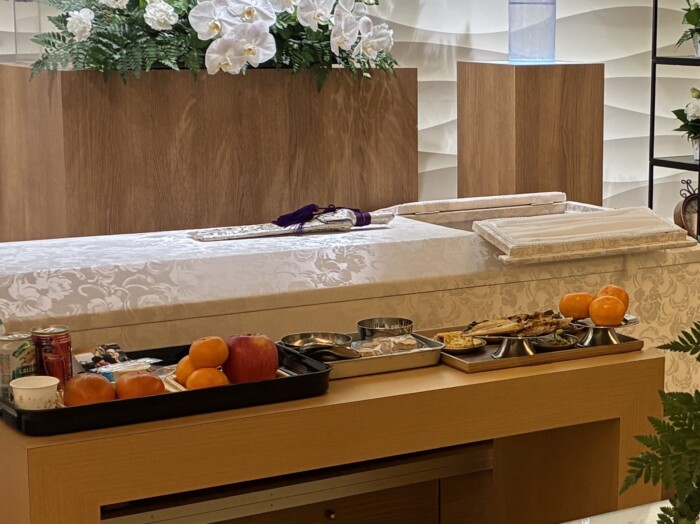 当初、ご家族は「特別なエピソードなんてないから…」と控えめに仰っていましたが、司会者が丁寧にお話を伺う中で、故人様の豊かにお人柄が浮かび上がってきました 。特にお食事へのこだわりが深く、「焼き魚だけは外せない」という大切な想いを伺ったため、大好きな味と共に安らかに旅立てるよう準備を整えました 。