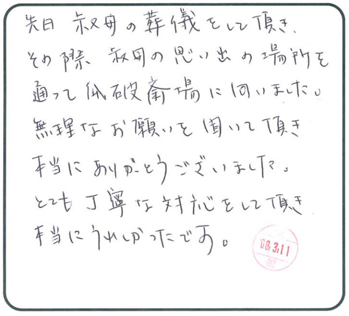 とても丁寧な対応をして頂き本当にうれしかったです。
