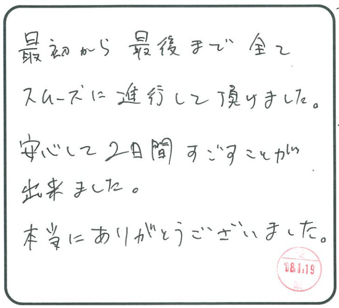 安心して2日間すごすことが出来ました。